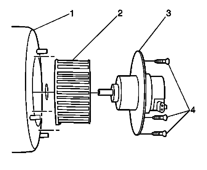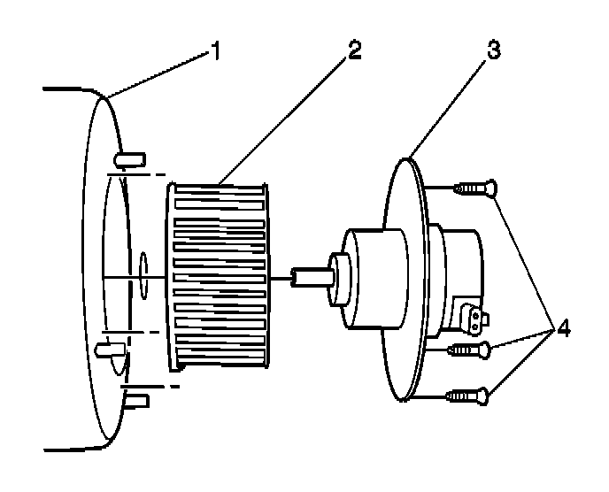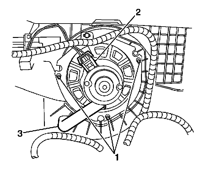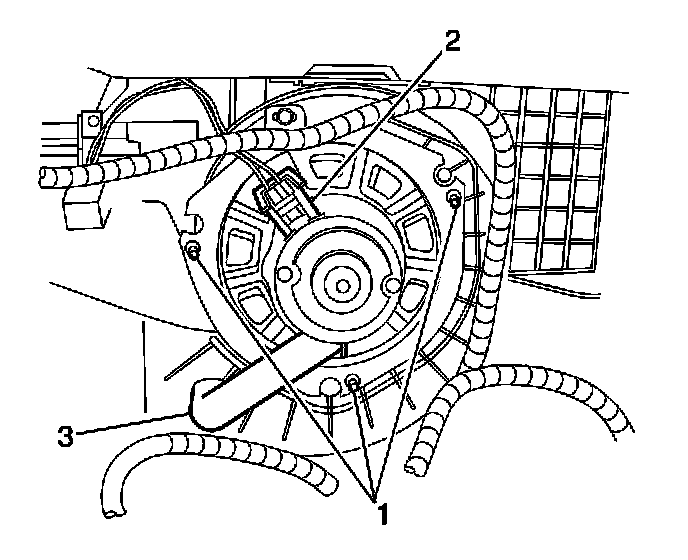 3. Remove the blower motor retaining screws (1).