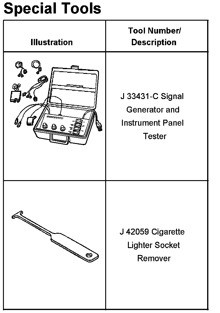 Instrument Panel, Gauges and Warning Indicators: Tools and Equipment