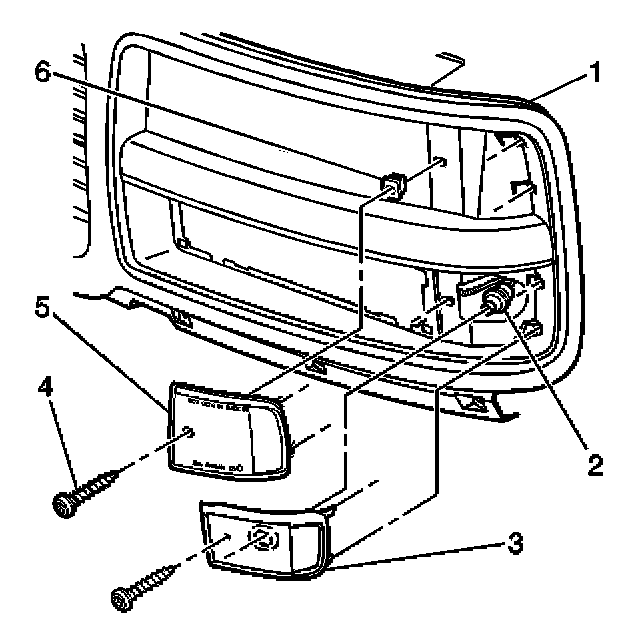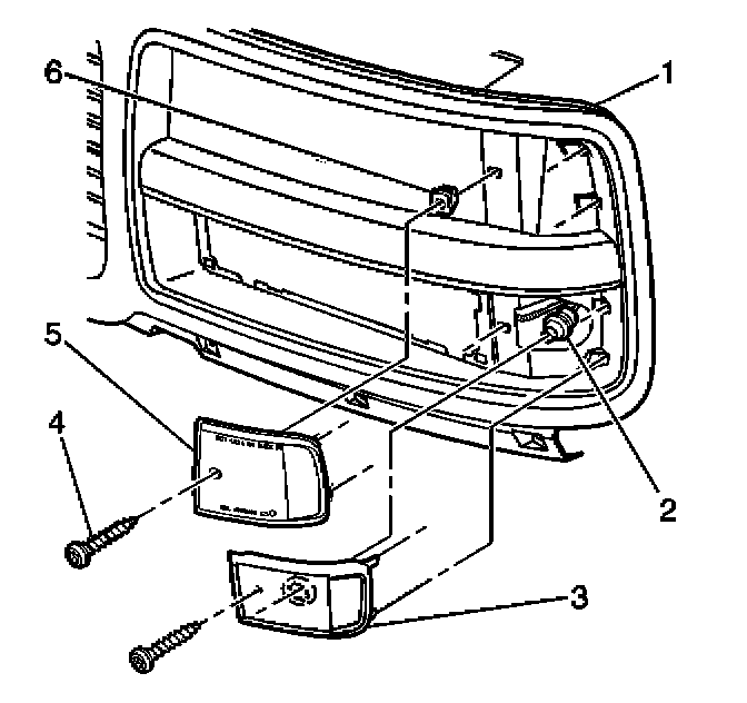 1. Remove the screw (4) that retains the side marker or the reflector to the grille.