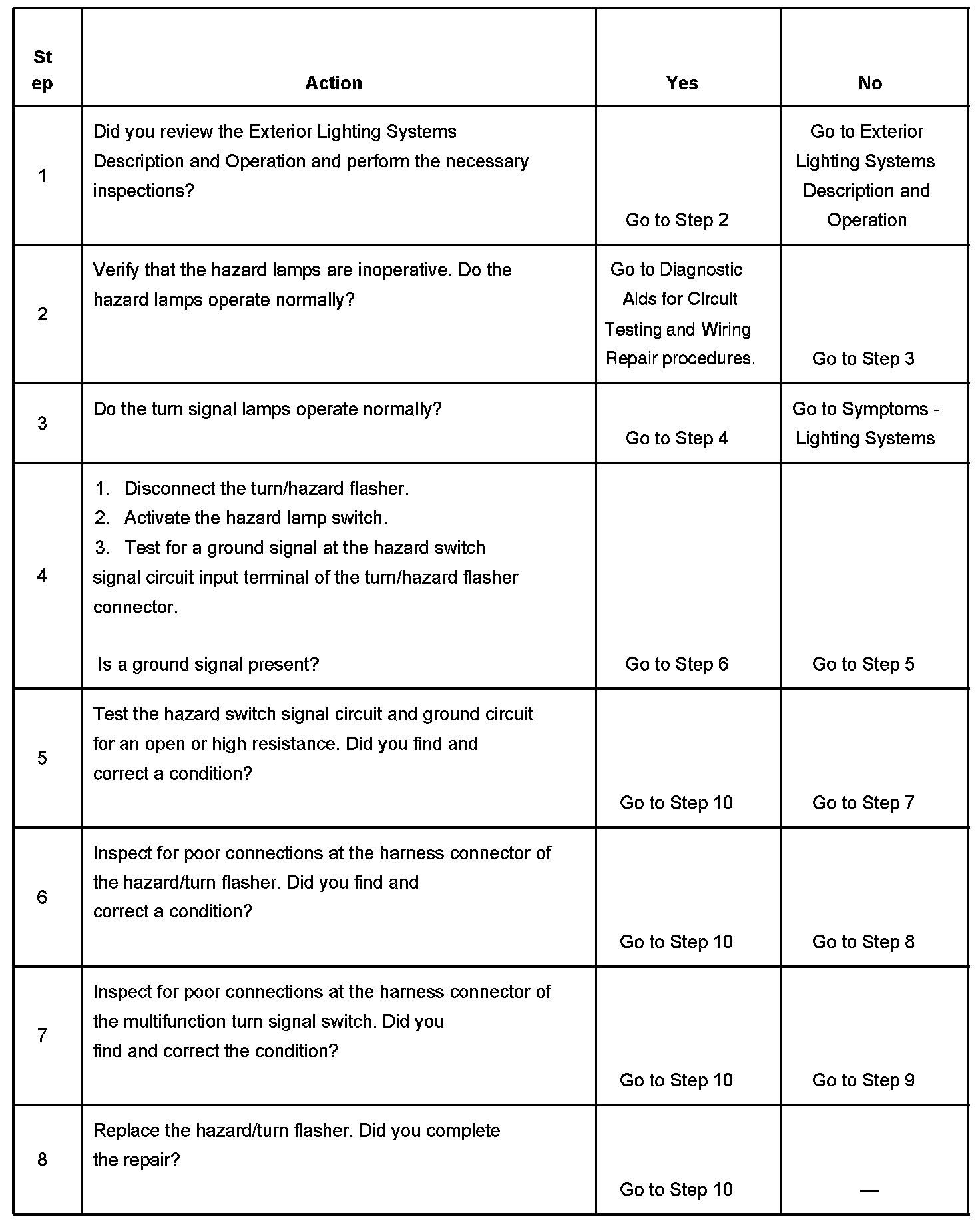 Hazard Lamps Inoperative