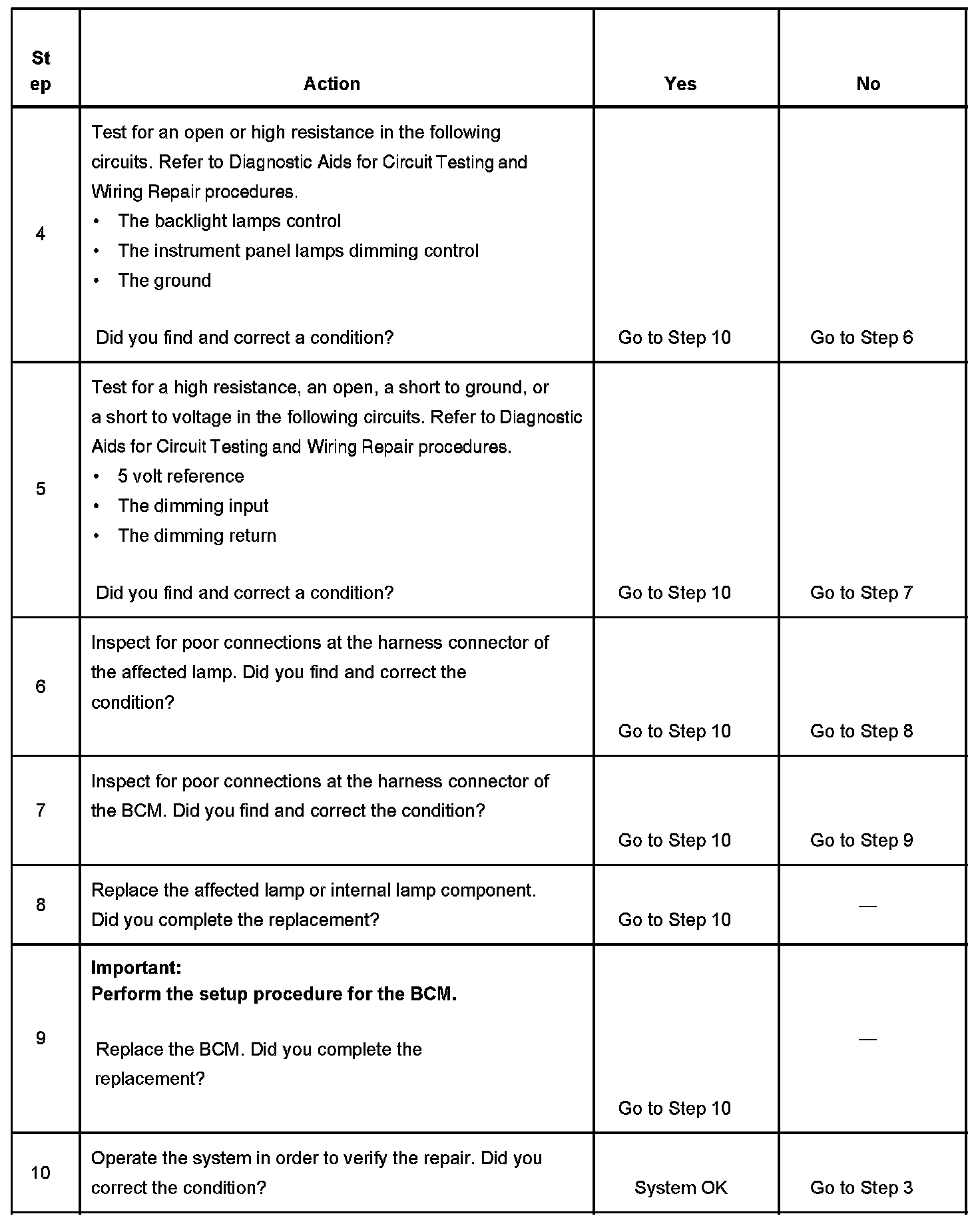 Interior Backlighting Inoperative