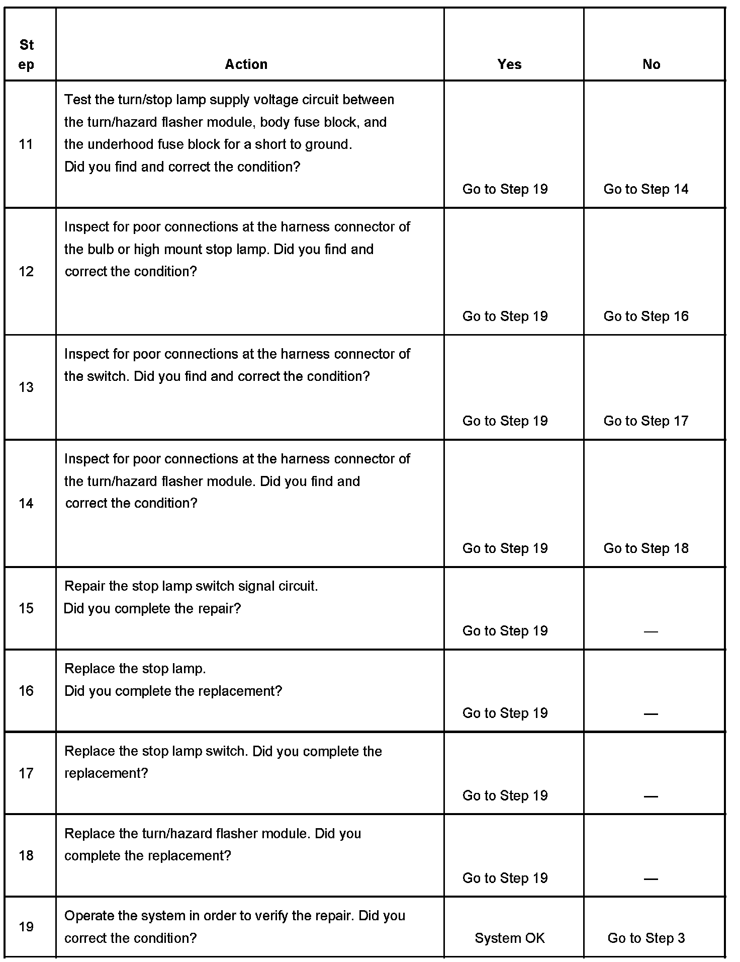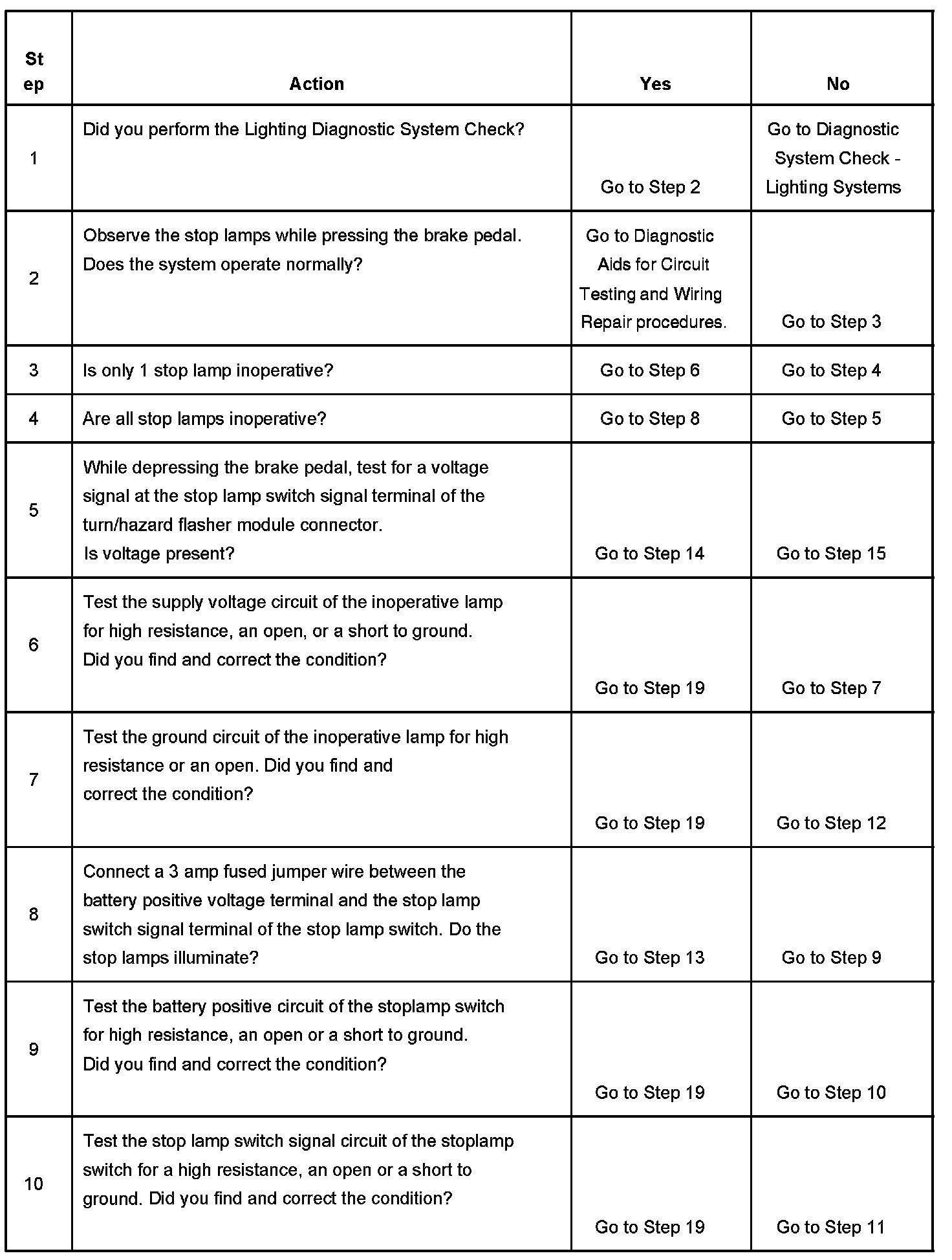 Stop Lamps Inoperative