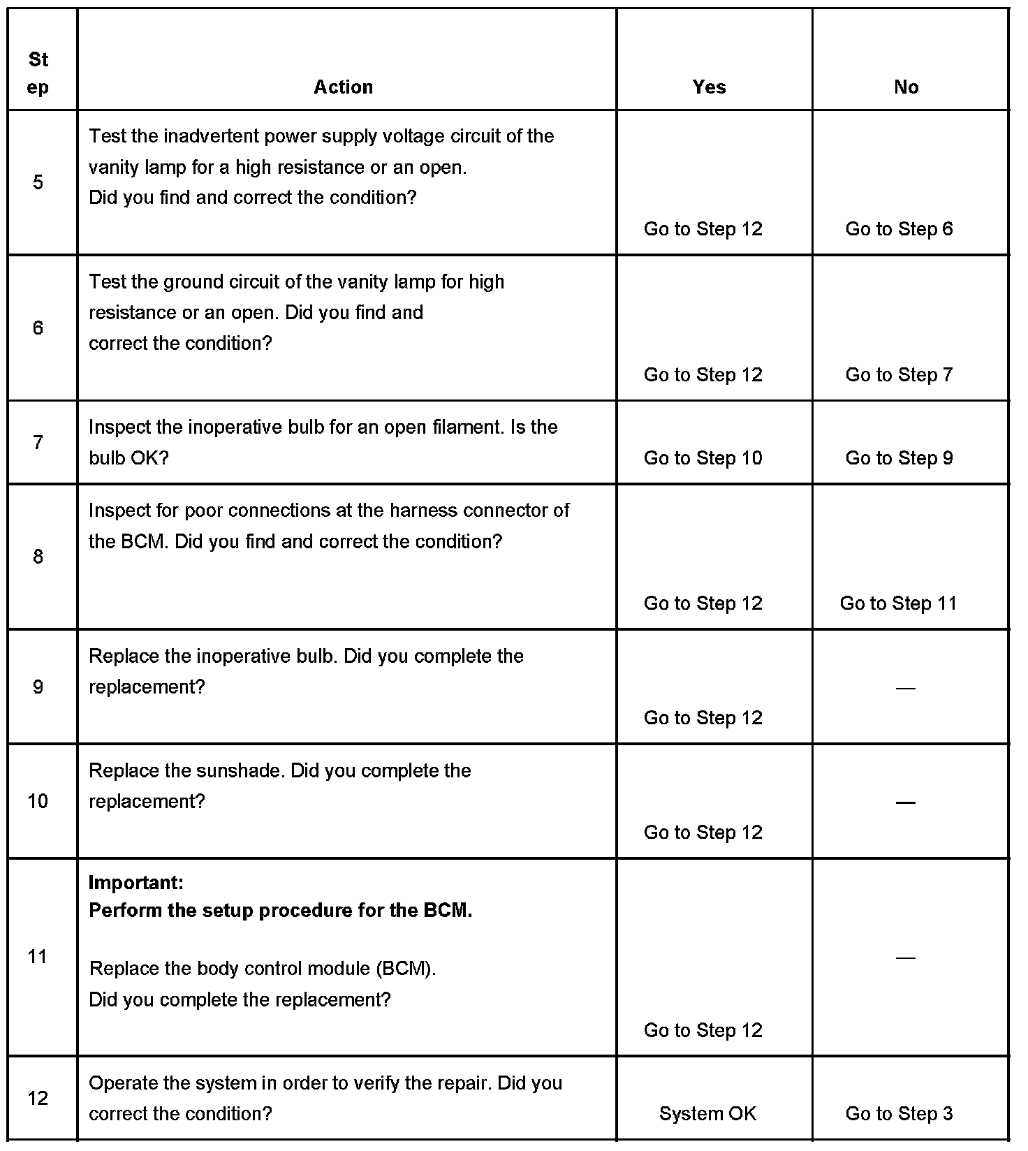 Vanity Mirror Lamps Inoperative