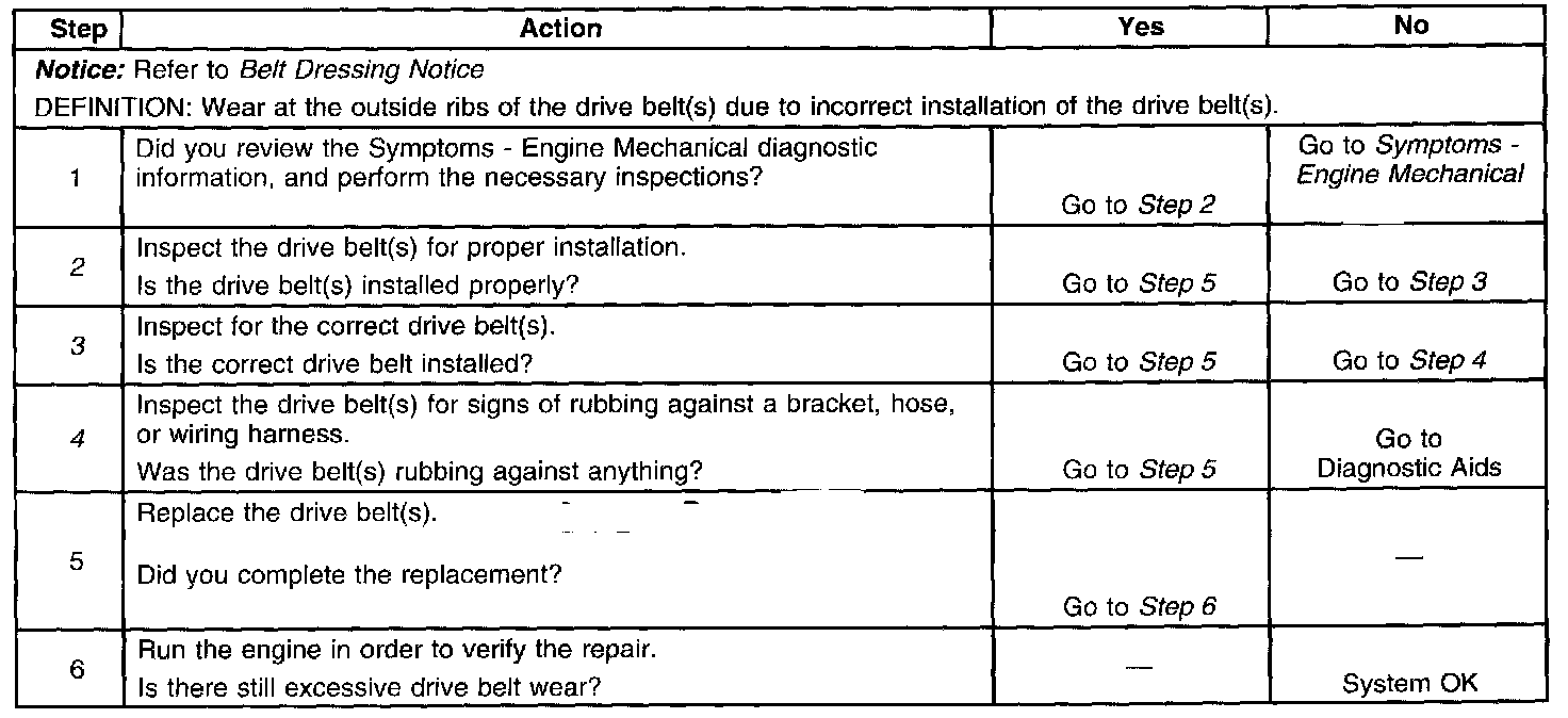 Drive Belt Excessive Wear DiagnosisDiagnostic Aids