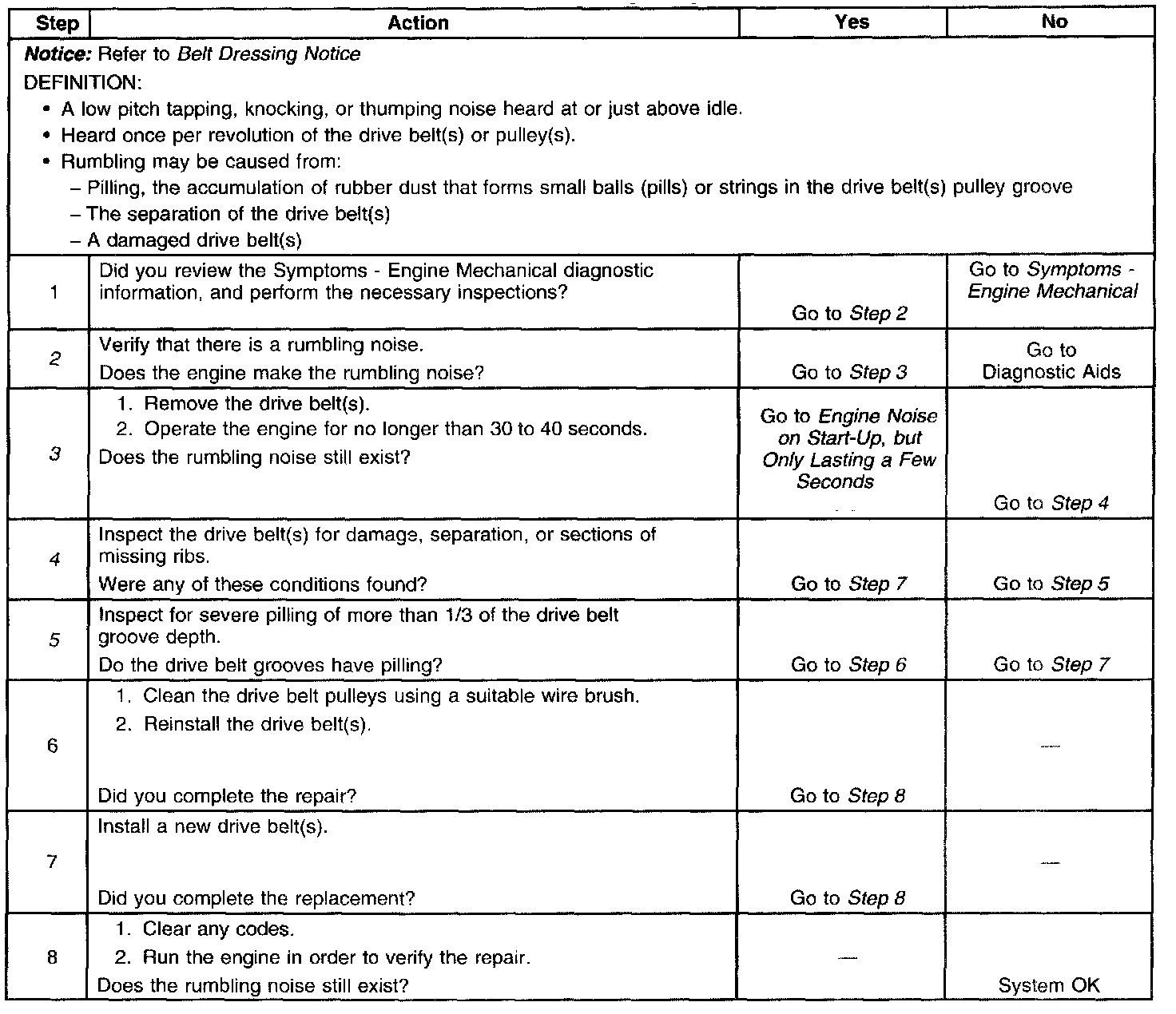 Drive Belt Rumbling DiagnosisDiagnostic Aids