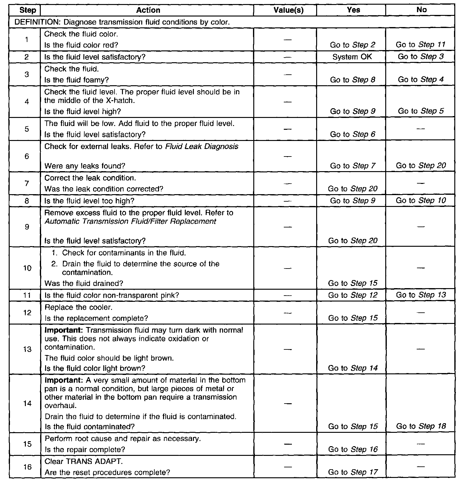 Transmission Fluid Checking Procedure