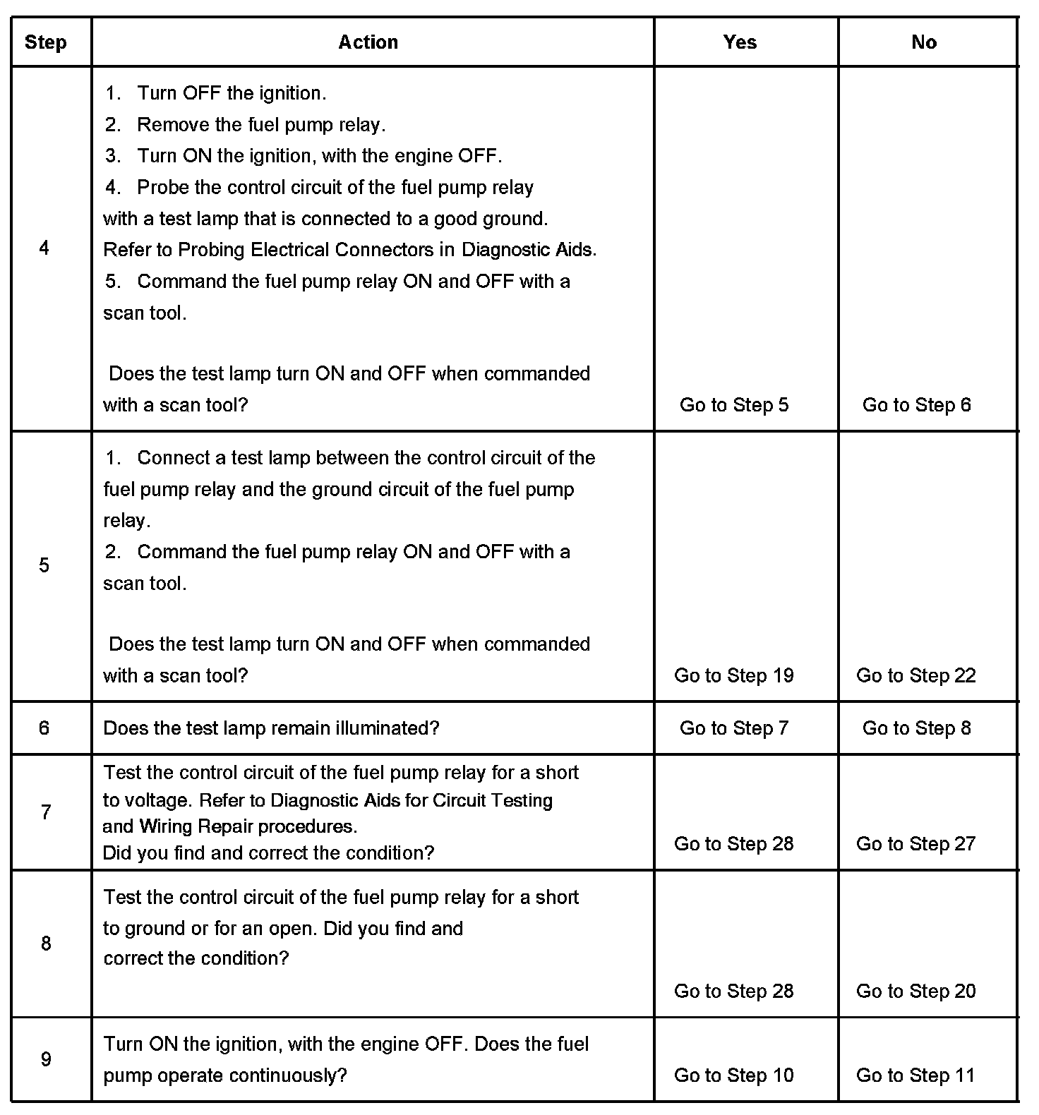 5. This step tests for an open in the ground circuit to the fuel pump relay.