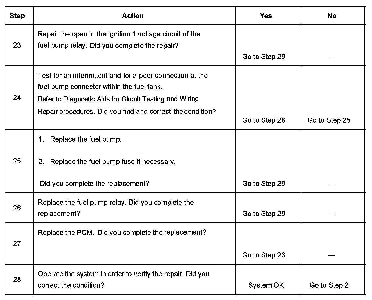 Fuel Pump Electrical Circuit Diagnosis