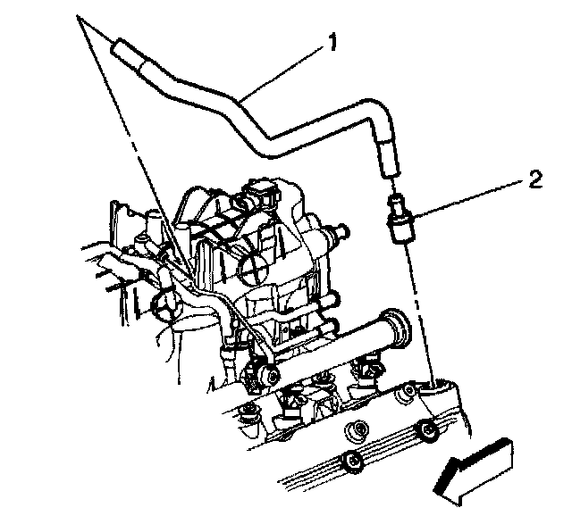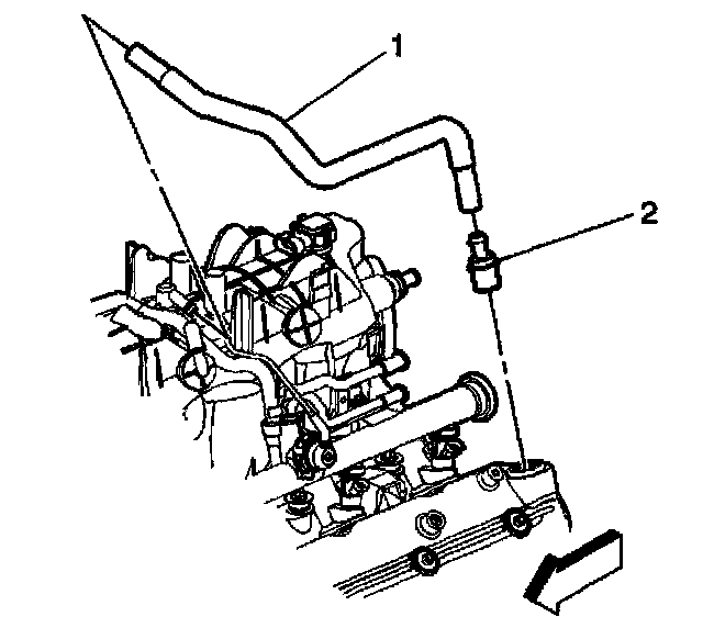 2. Remove the positive crankcase ventilation (PCV) tube (1) from the intake manifold and valve rocker arm cover.