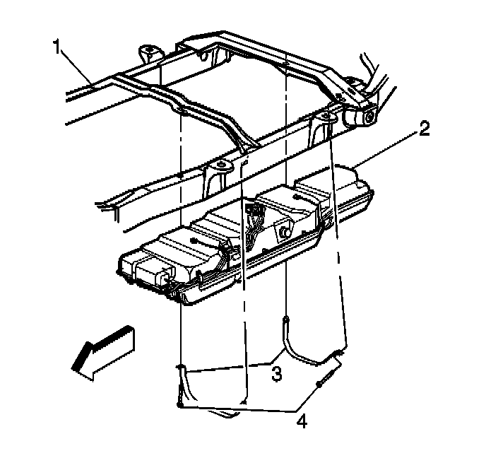 11. Install the new attaching bolts (4) to the fuel tank strap.