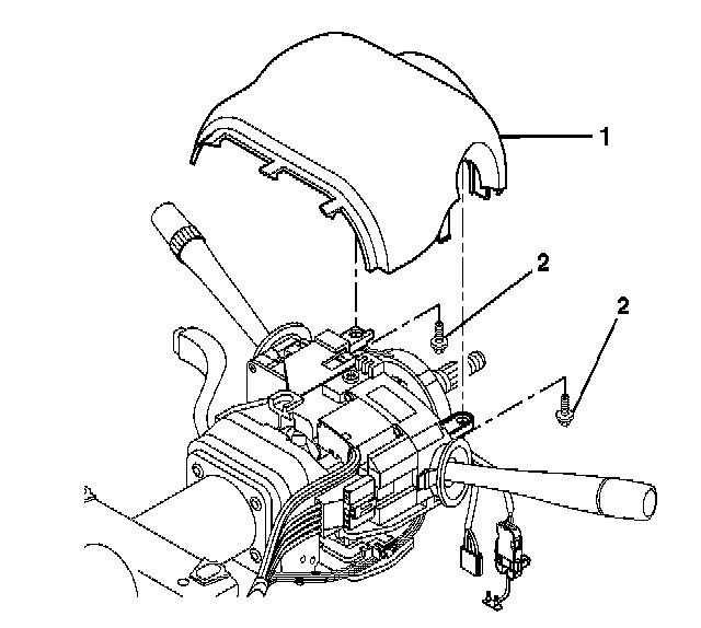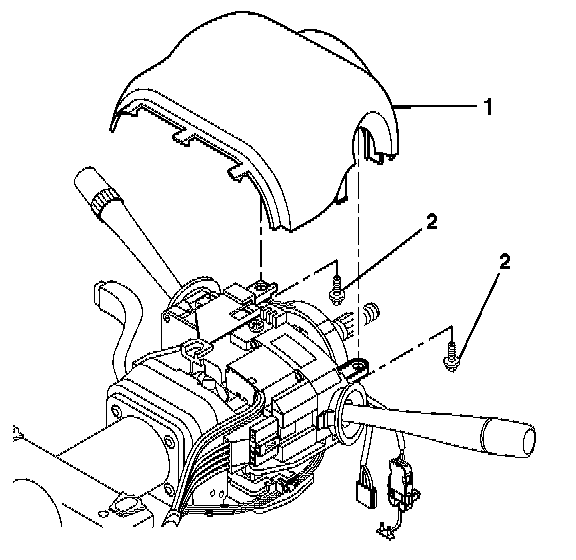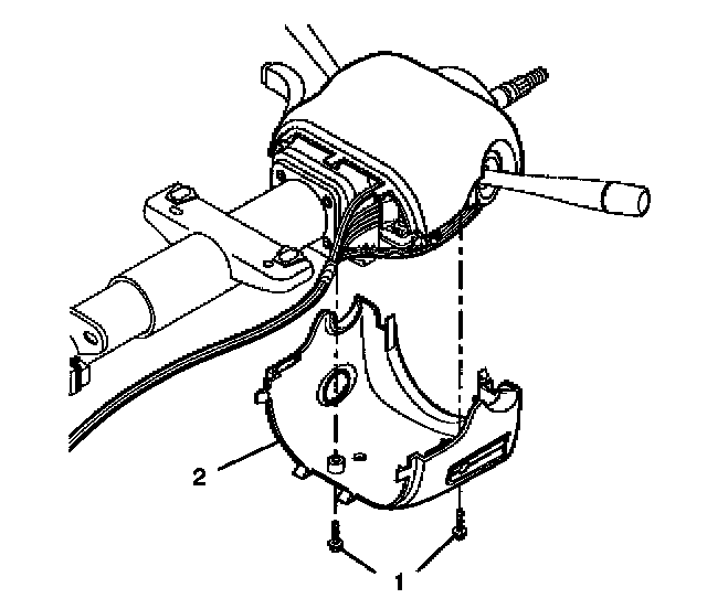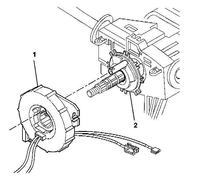 3. Align the SIR coil assembly (1) with the horn tower on the turn signal cancel cam assembly (2).