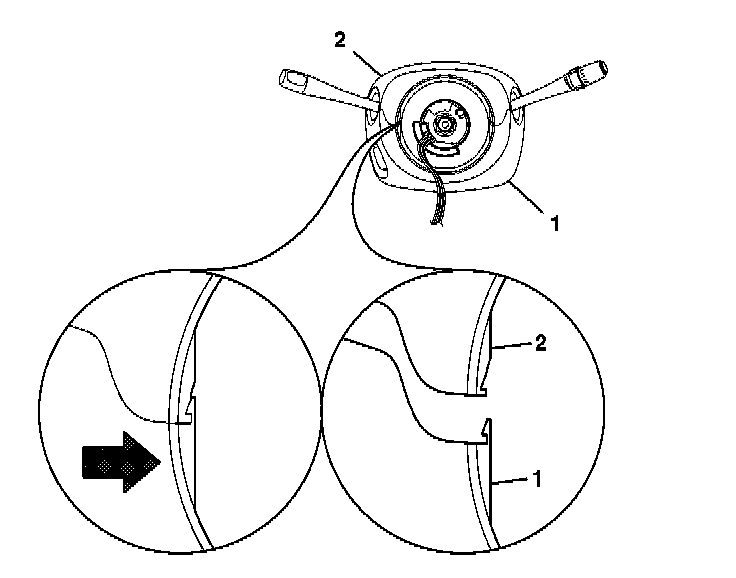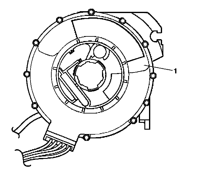 2. If centering is required, follow the instructions on the notice (1) of the coil assembly. Refer to Inflatable Restraint Steering Wheel Module Coil Centering in Steering Wheel and Column.