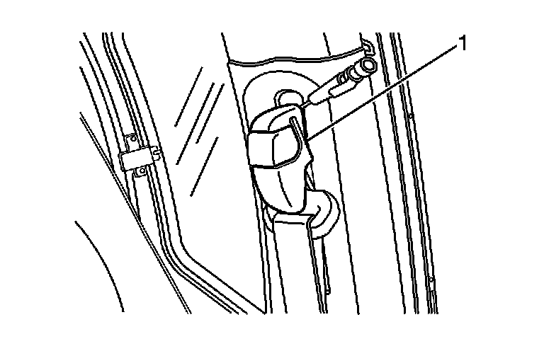 1. Using a flat bladed tool, remove the shoulder/seat belt guide to the guide trim cover (1).