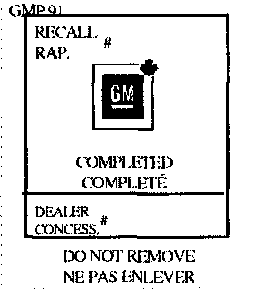Place a Recall Identification Label on each vehicle corrected in accordance with the instructions outlined in this Product Recall Bulletin. Each label provides a space to include the recall number and the five-digit dealer code of the dealer performing the recall service. This information may be inserted with a typewriter or a ballpoint pen.