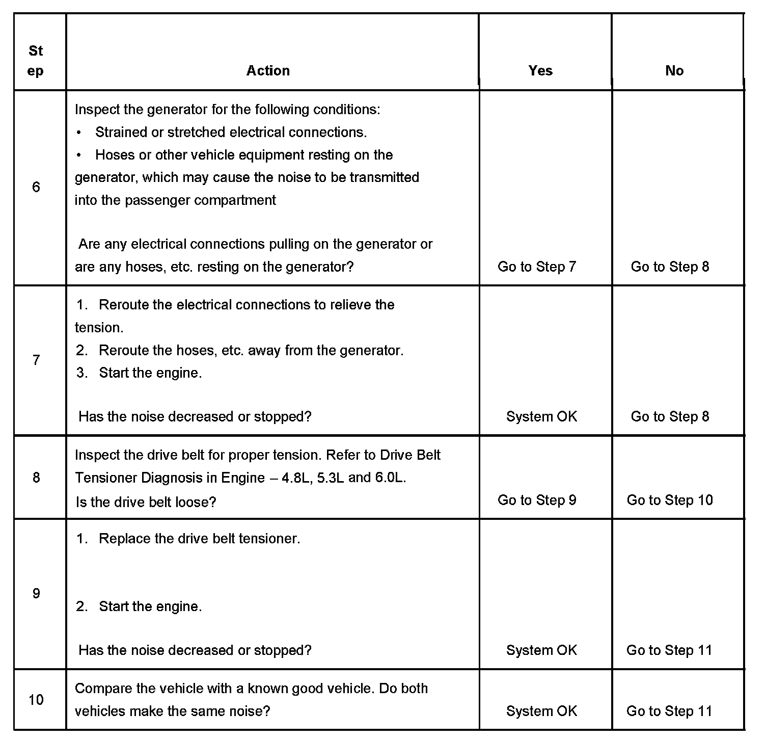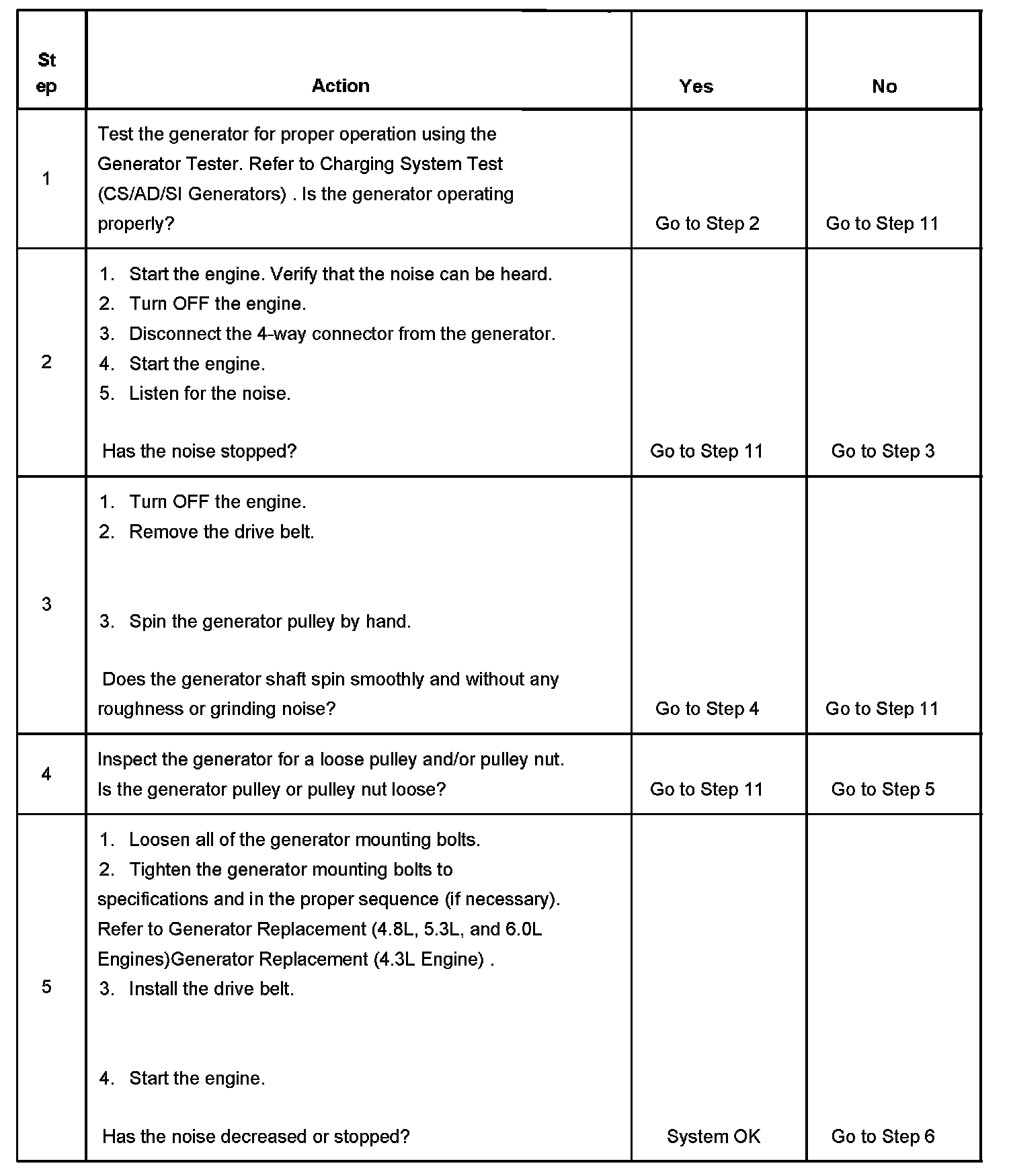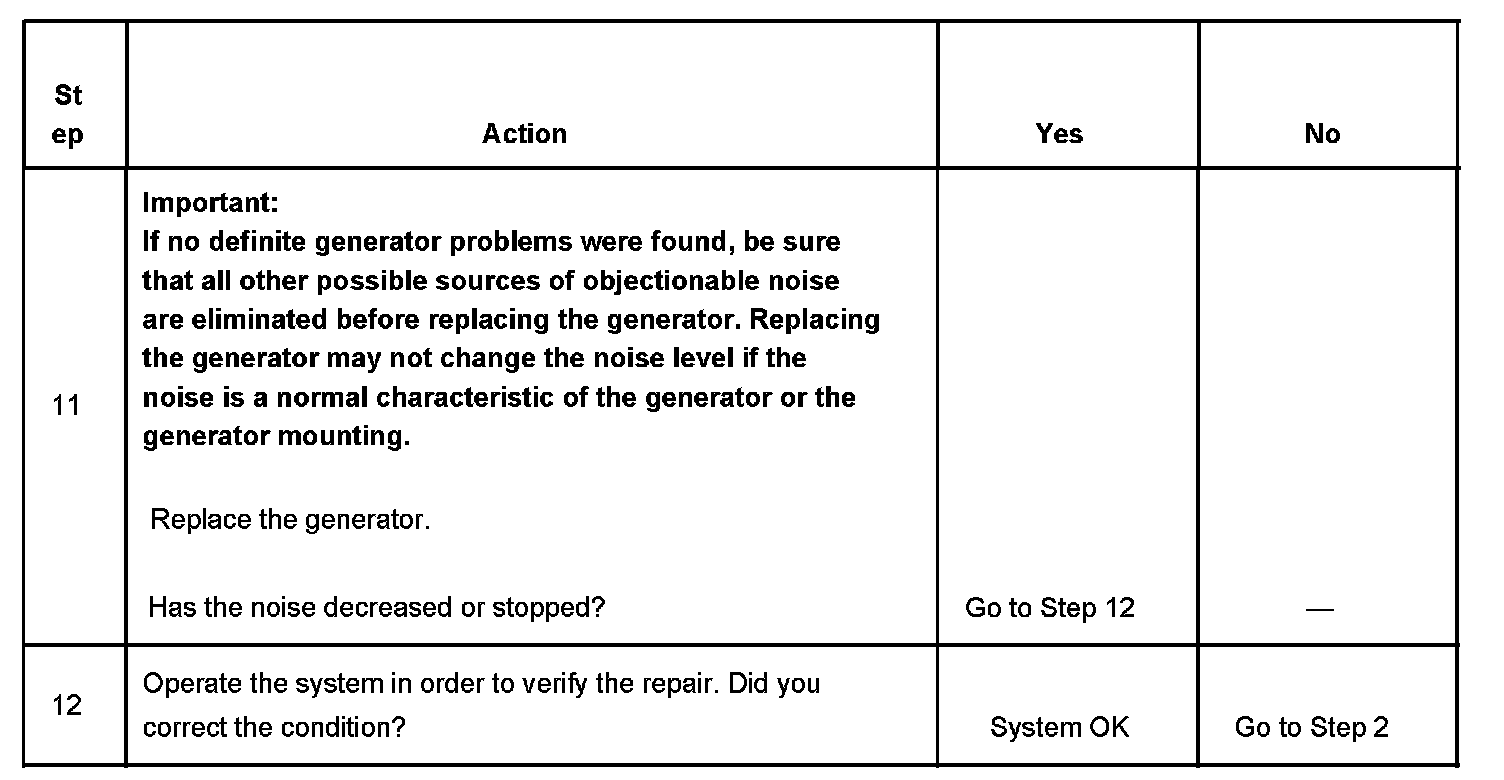 DIAGNOSTIC AIDSNoise from a generator may be due to electrical or mechanical noise. Electrical noise magnetic whine usually varies with the electrical load placed on the generator and is a normal operating characteristic of all generators. When diagnosing a noisy generator, it is important to remember that loose or misaligned components around the generator may transmit the noise into the passenger compartment and that replacing the generator may not solve the problem.
