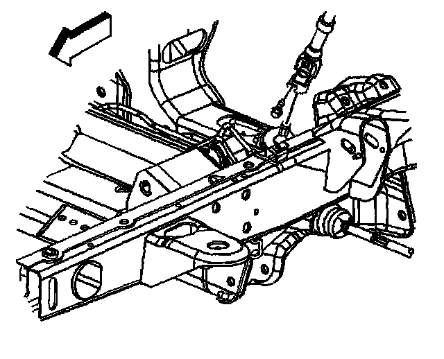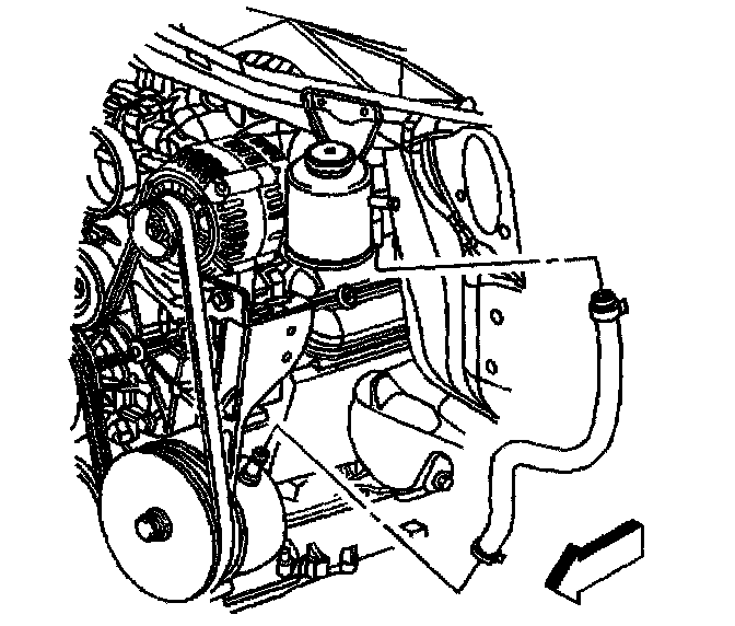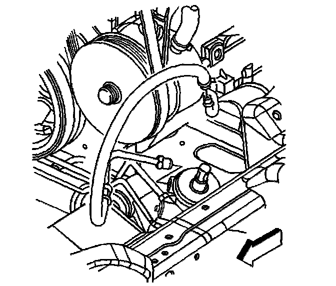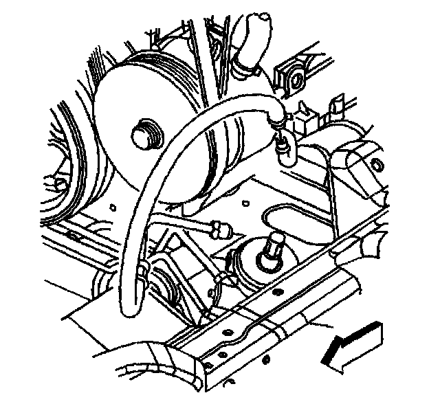 8. Disconnect the power steering gear outlet hose from the power steering pump through the wheel well.