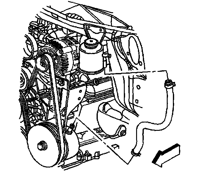 10. Install the reservoir outlet hose to the power steering pump through the wheel well.