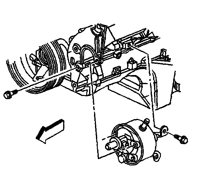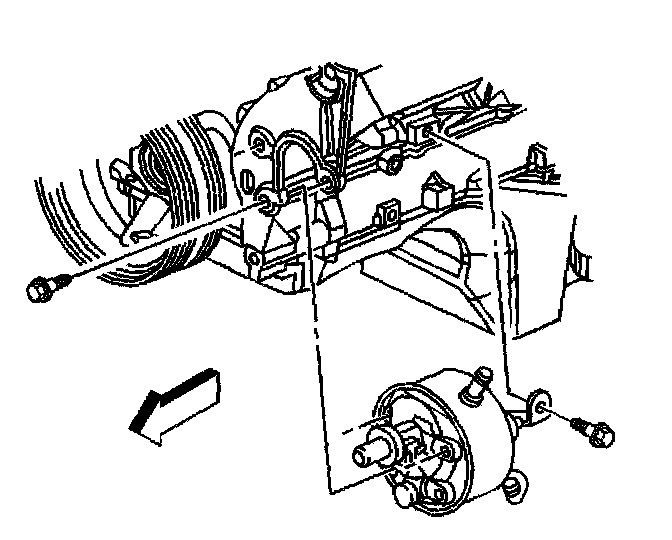 16. Remove the power steering pump rear bracket from the power steering pump.