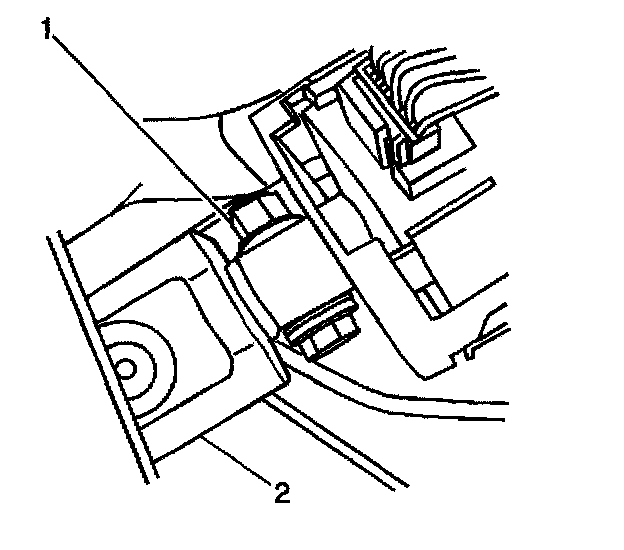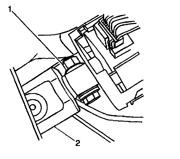 3. Remove the upper intermediate shaft (2) to steering column retaining nut and bolt (1).