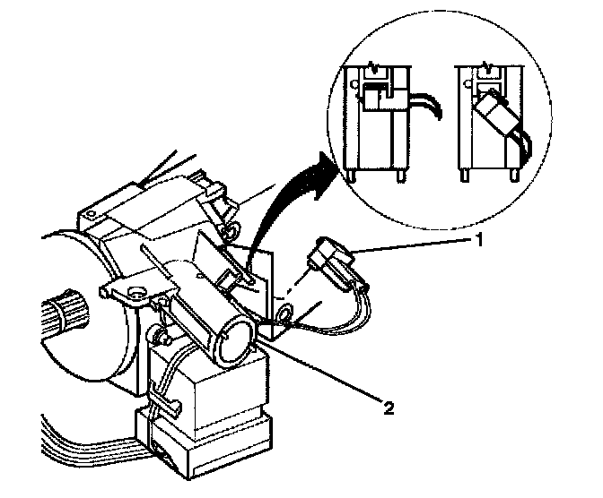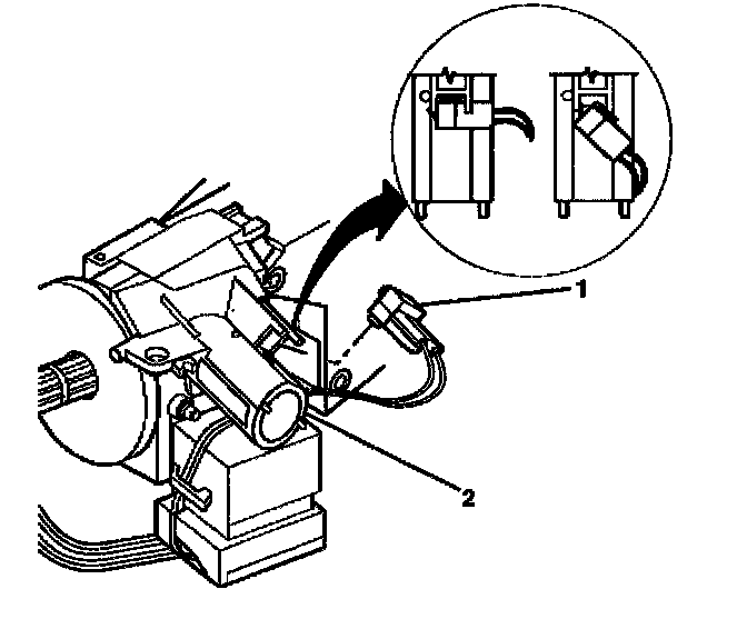 3. Push the key alarm connector (1) into the ignition lock cylinder case assembly (2).