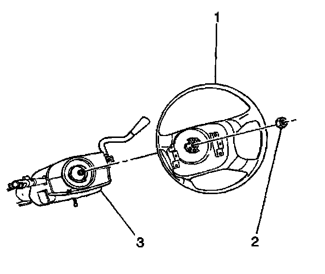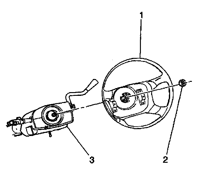 3. Remove the steering wheel and the nut (2).