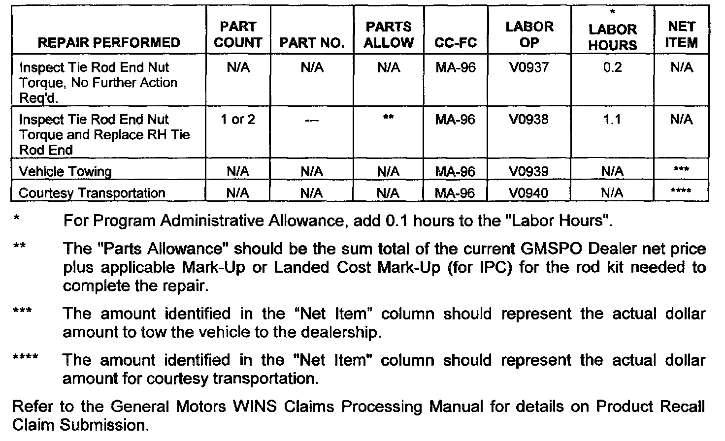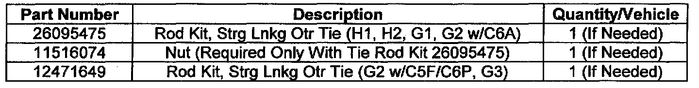 Due to the very small number of vehicles that are expected to require tie rod ends, dealers are asked to order only after inspection determines that a part is required.