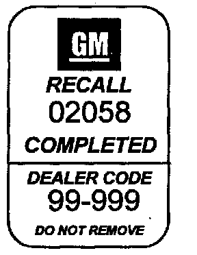 11. Install the GM Recall Identification Label.