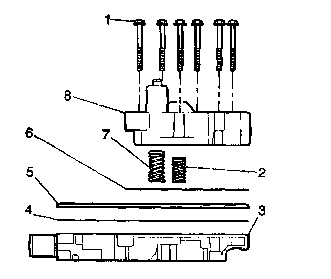 8. Remove the control valve body spacer plate (5).