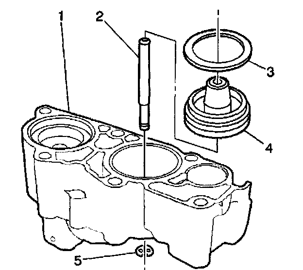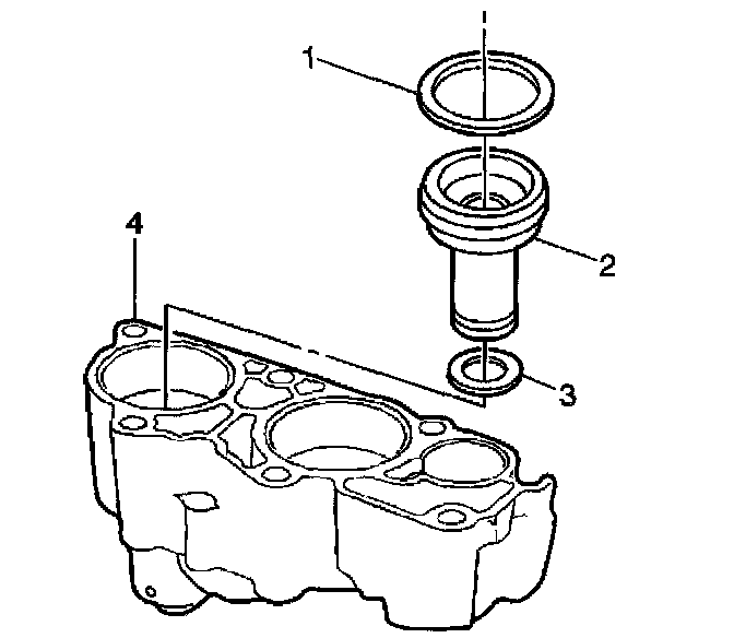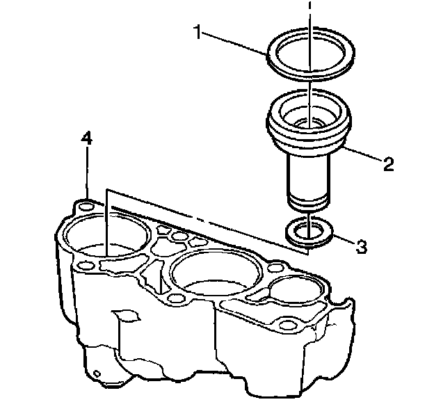 1. Install the 3rd clutch accumulator piston inner (3) and outer (1) seals. Lubricate the 3rd clutch accumulator piston seals (1, 3) with DEXRON III automatic transmission fluid.