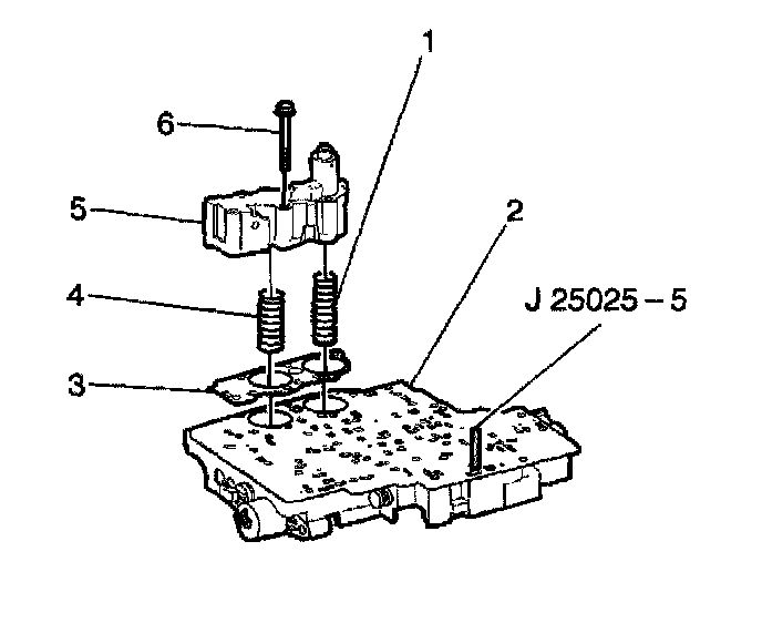 1. Install the J 25025 into the control valve body bolt hole where the manual shaft detent roller and spring assembly is mounted.