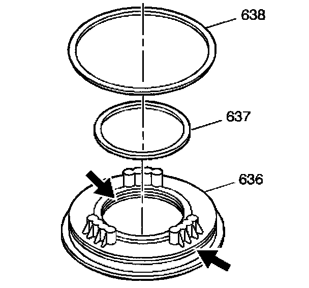 9. Remove the inner (637) and outer (638) seals from the intermediate clutch piston (636).