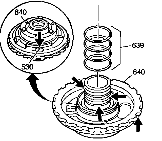 7. Inspect the intermediate clutch spring assembly (635) for collapsed coils and distortion.