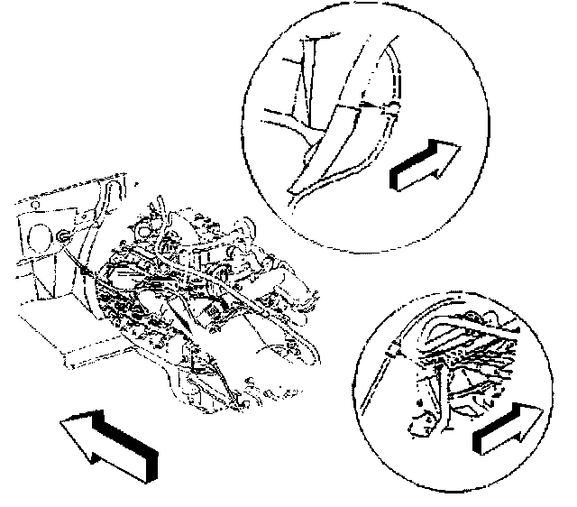 9. Remove the shift cable clips from the left front of the engine compartment.