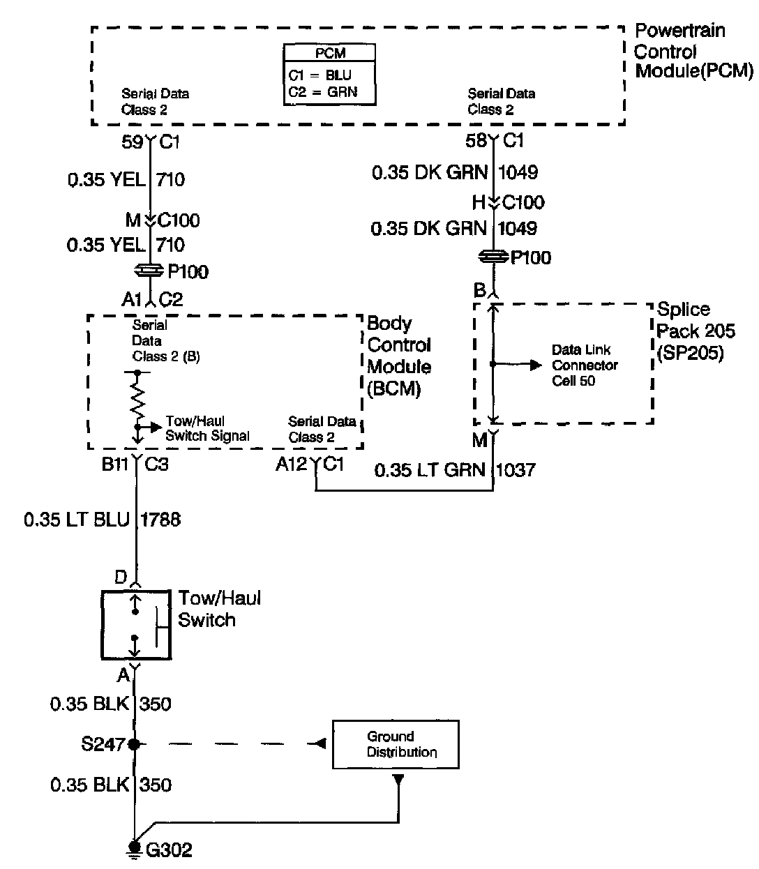 Tow/haul mode enables the operator to achieve enhanced shift performance when towing or hauling a load. When tow/haul mode is selected, the tow/haul switch input signal to the body control module (BCM) is momentarily toggled to zero volts. This signals the powertrain control module (PCM) to extend the length of time between upshifts and increase transmission line pressure. Cycling the tow/haul switch again disables tow/haul mode and returns the transmission to a normal shift pattern.