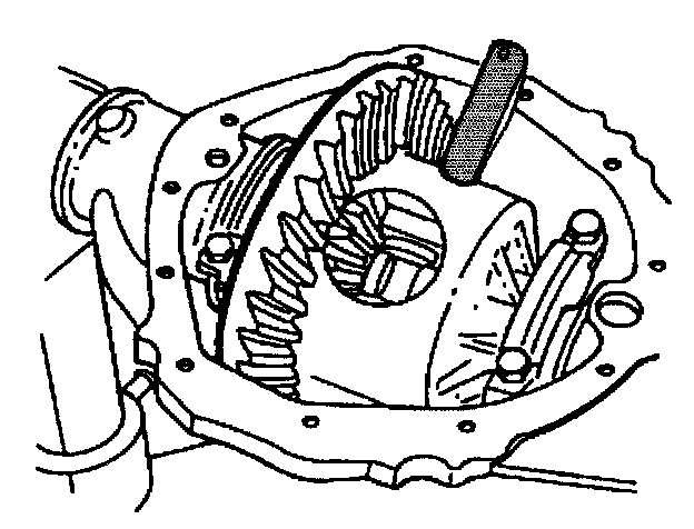 7. On axles with a locking differential, remove the shaft part way. Rotate the case until the pinion shaft touches the housing.