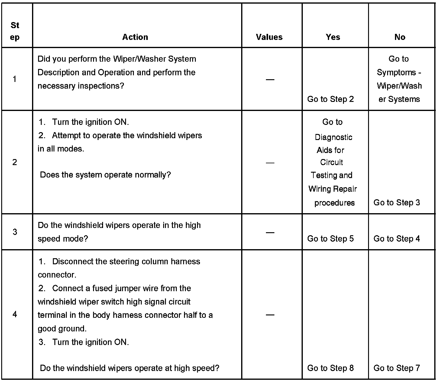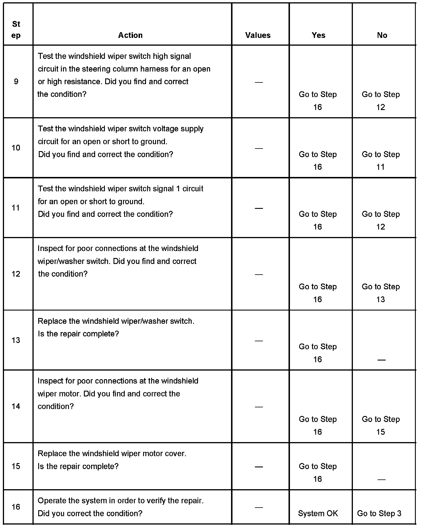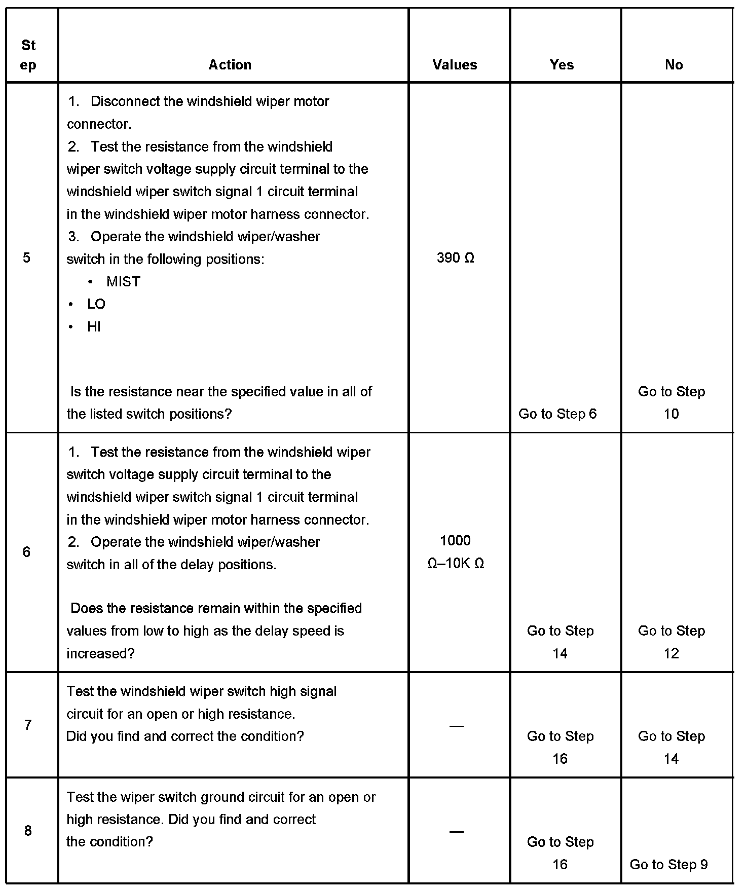 5. This step tests for continuity through the 390 Ohm resistor in the windshield wiper/washer switch.