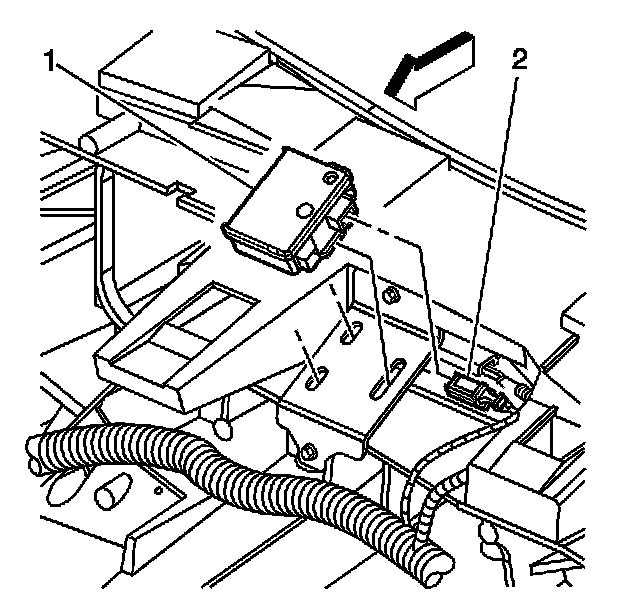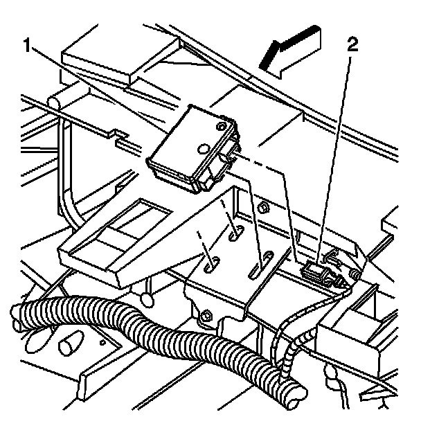 3. Disengage the remote control door lock receiver (1) from the door lock receiver bracket.
