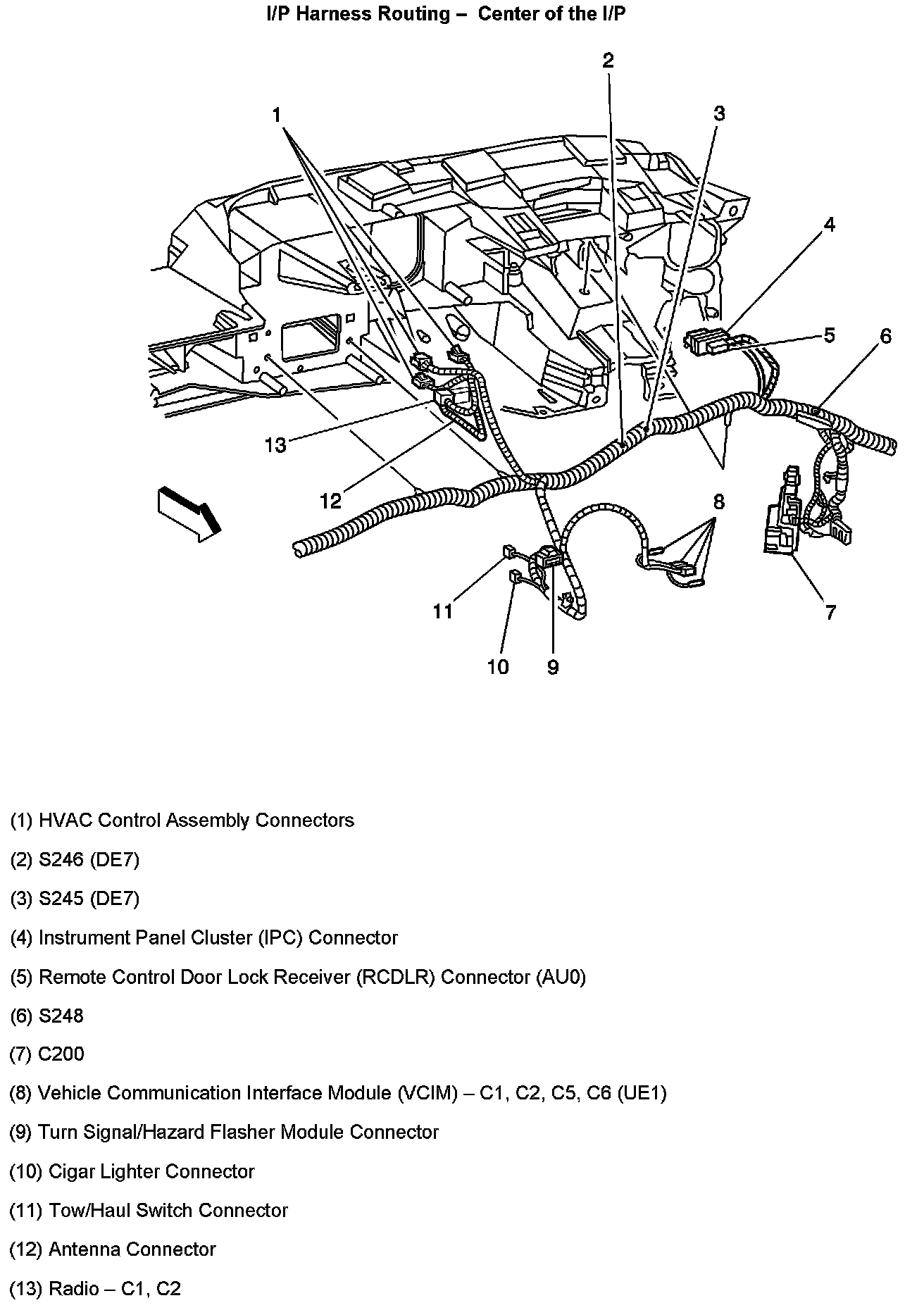 I/P Harness Routing - Center Of The I/P: