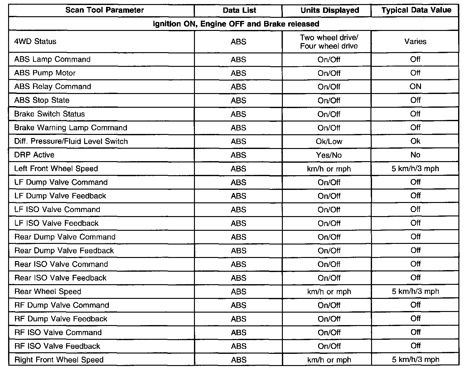 Scan Tool Data List