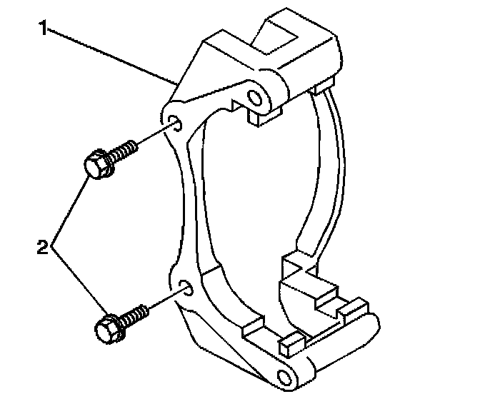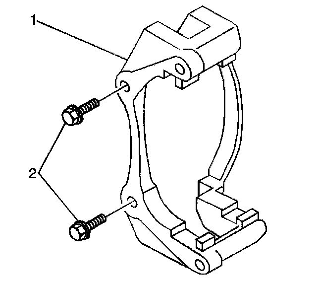 7. Remove the brake caliper bracket mounting bolts (2).