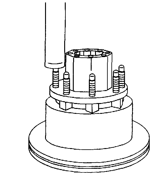 7. Press the wheel studs out of the hub and rotor assembly.