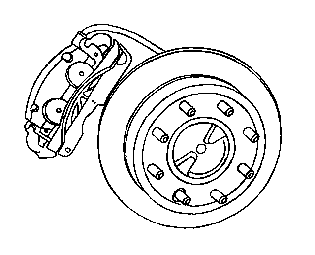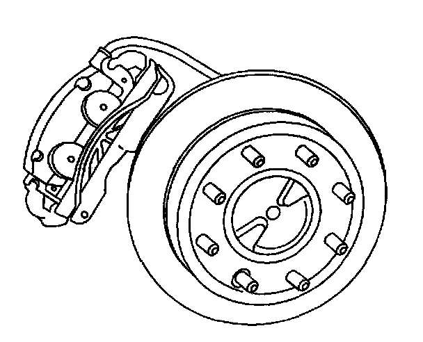 Notice: Support the brake caliper with heavy mechanic's wire, or equivalent, whenever it is separated from it's mount and the hydraulic flexible brake hose is still connected. Failure to support the caliper in this manner will cause the flexible brake hose to bear the weight of the caliper, which may cause damage to the brake hose and in turn may cause a brake fluid leak.