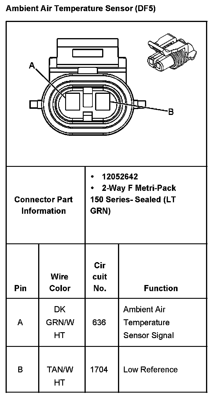 Ambient Air Temperature Sensor With RPO Code DF5: