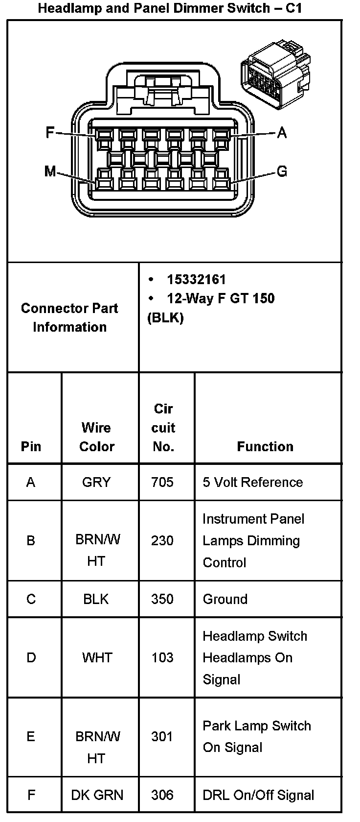 Headlamp And Panel Dimmer Switch - C1 Part 1: