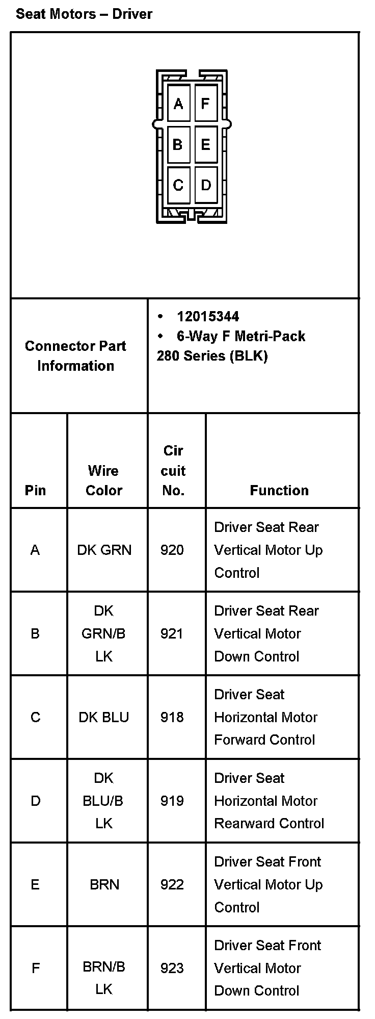 Seat Motors - Front Passenger With RPO Code AG2 Part 2: