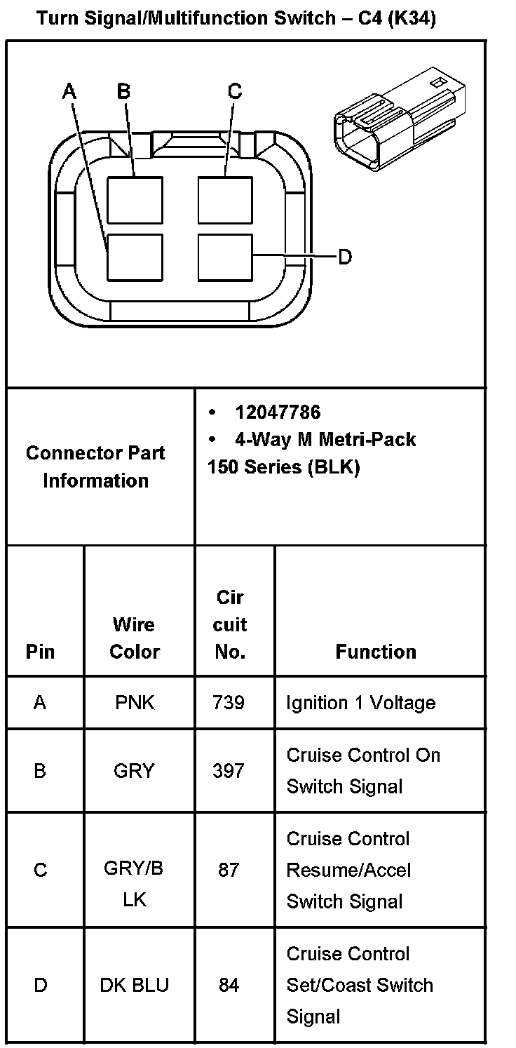 Turn Signal/Multifunction Switch - C4 (With RPO Code K34):