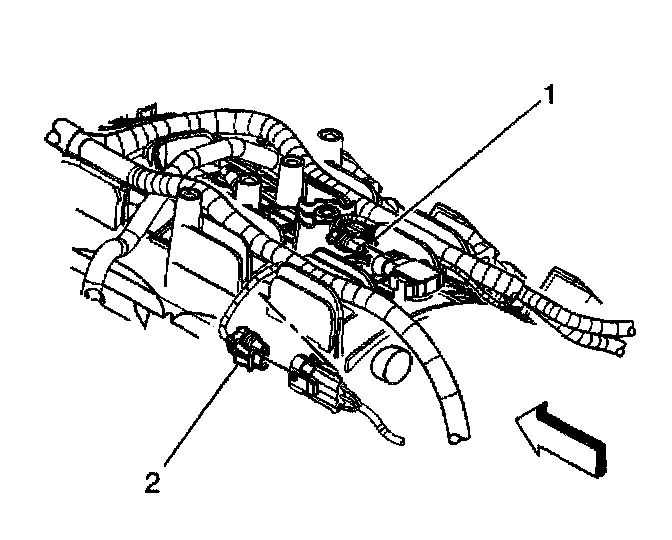 14.1. Remove the EVAP tube end (2) from the solenoid (1).