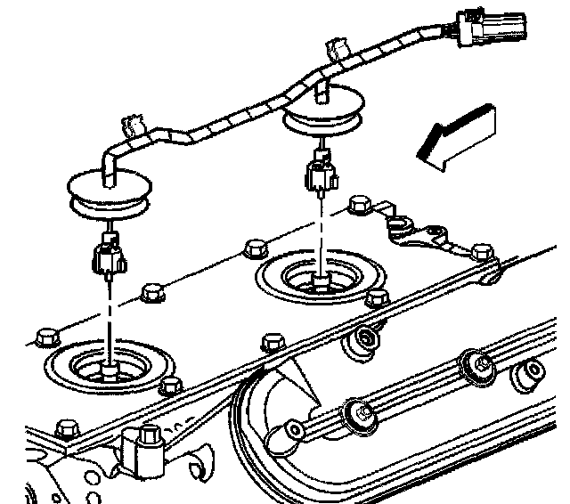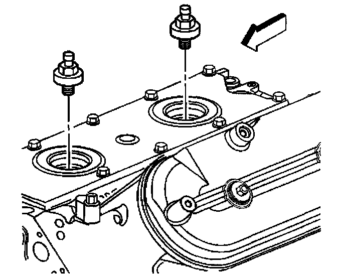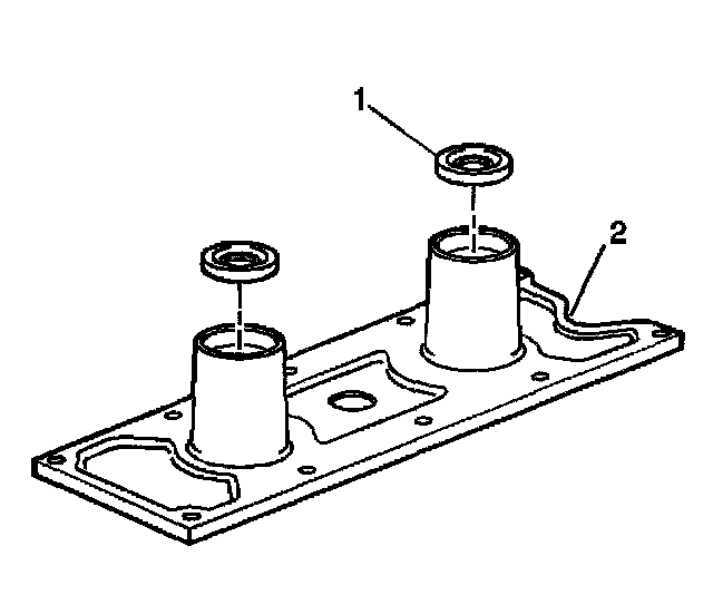 1. Install NEW knock sensor oil seals (1) into the valley cover (2).