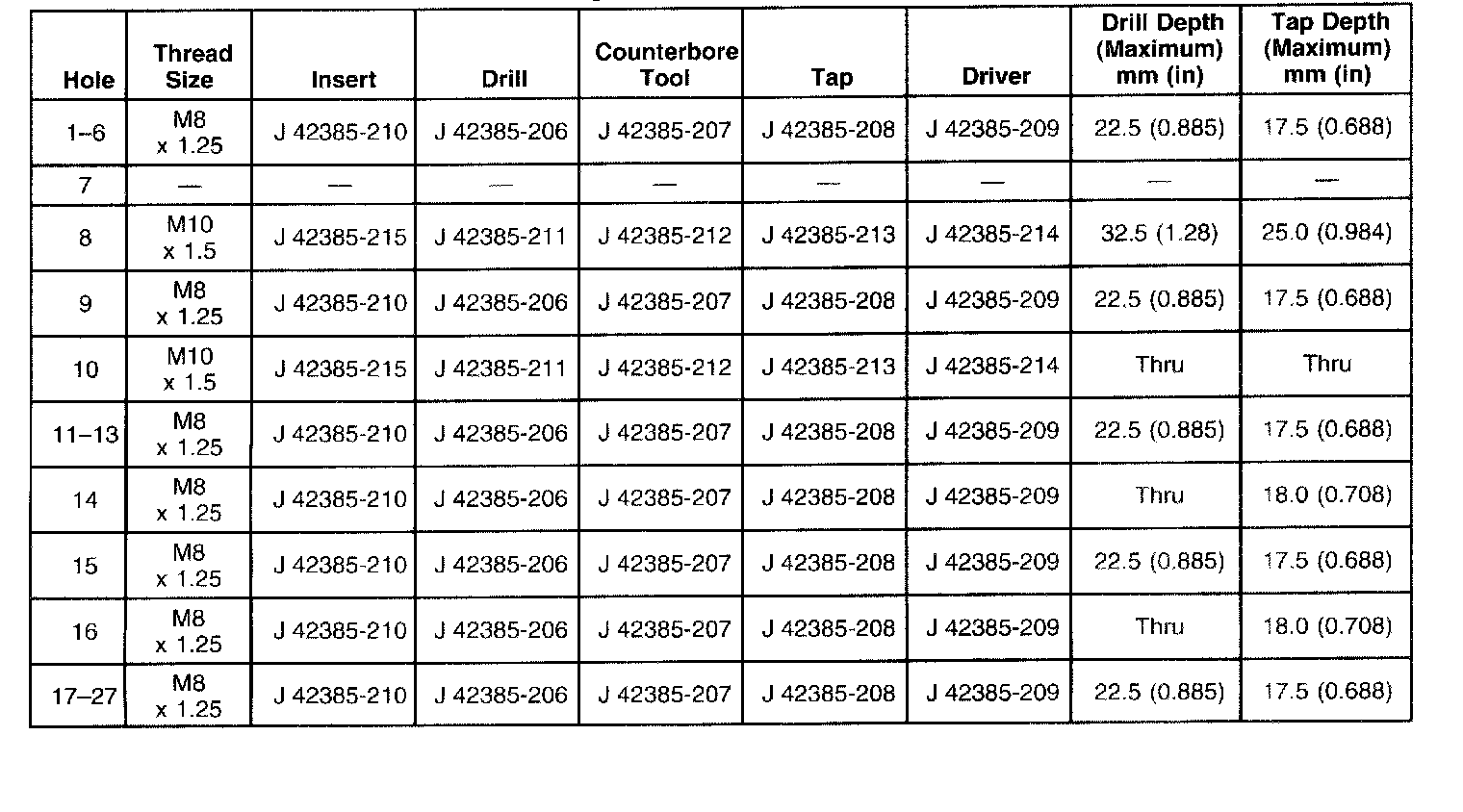Thread Repair Specifications