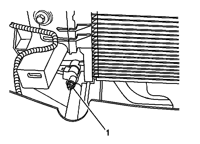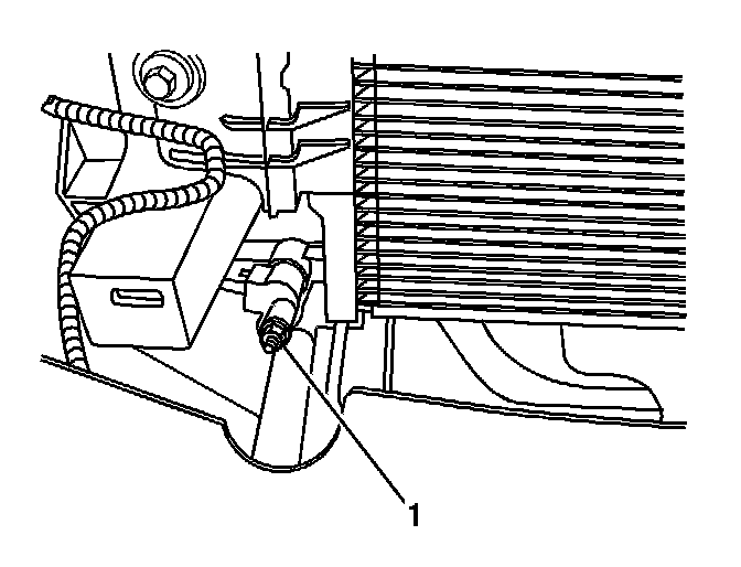 4. Remove the front evaporator hose nut (1) from the condenser.